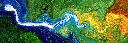 This vibrant liquid paint image showcases colorful waves that create a unique abstract background, perfect for art and design projects.