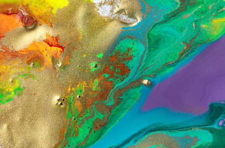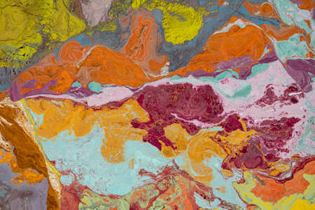 Closeup of multicolor abstract marbling texture. Hand painted beautiful pattern, wallpaper or background for print design, banner.
