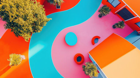 Beautiful aerial pattern of colorful water and mud, shot with a drone located at Geamana, Romania, a formerly village that was covered with toxic waste from a mining operation nearby.