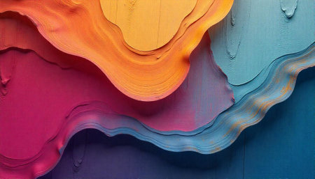 A vibrant close-up of thick paint strokes in various colors, showcasing a rich texture and perfect for inspiring creativity in artistic projects or design.