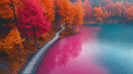 Lake pink blue abstract bright beautiful landscape background. generative ai