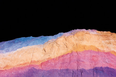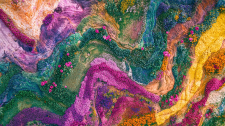 Vivid hues blend in abstract patterns over rocky landscape revealing natures artistry