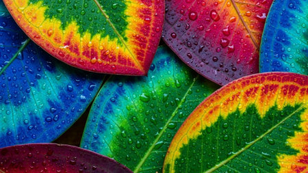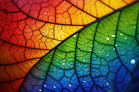 close up of rainbow colored leaf texture - abstract background and nature concept