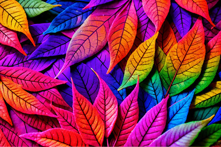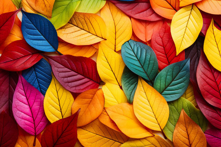 Bunch of colorful leaves that are on top of each other. Generative AI.