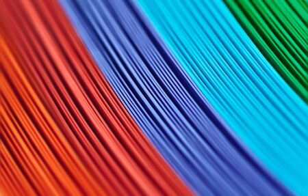 Close up of colorful electric cable on black background. Selective focus.