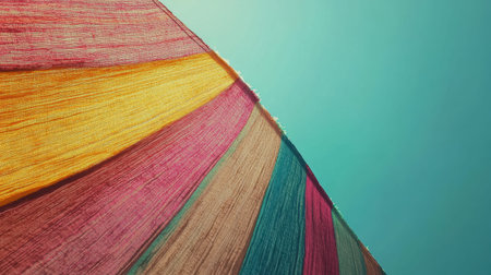 A dynamic display of colorful fabric draped elegantly, capturing a serene outdoor atmosphere with bright hues and soft textures, perfect for artistic and creative applications.