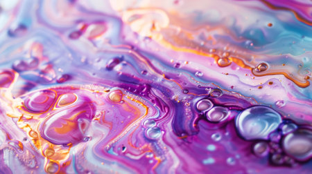 Colorful showing abstract macro shot of colorful liquid gel with swirling patterns and tiny air bubbles. resolution
