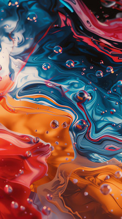 Abstract multi-colored paint background. Acrylic texture with marble pattern. Wallpaper. Mixing paints. Modern art.