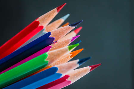 Colored pencils close up. Macro shooting. A tool for drawing and creativity for children and adults. Drawing with colored pencils