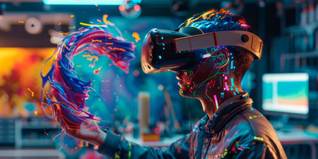 Exploring virtual reality technology with futuristic visuals and immersive experiences