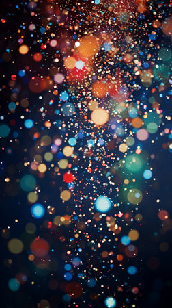 A dazzling background featuring vibrant bokeh effects and colorful glitter particles, ideal for celebratory themes, holiday events, and joyful occasions.