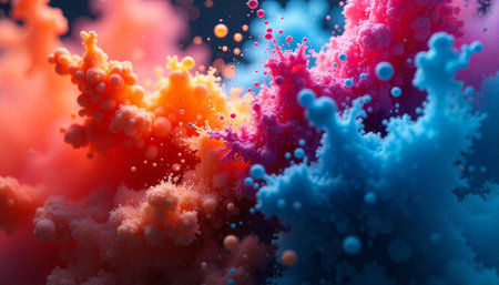 Abstract colorful explosion: vibrant clouds of smoke and bubbles