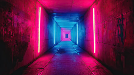 AI Generated. Neon lit tunnel with vibrant glowing colors