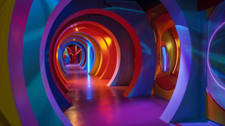 Futuristic neon tunnel with vibrant colors and curved architecture.