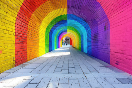 Brick Tunnel Painted with a Rainbow Archway