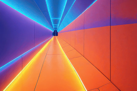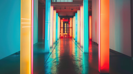 Neon tubes illuminate a corridor with vibrant hues, creating an electrifying atmosphere, Ai Generated.