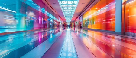 vanishing point of rainbow colored corridor at certain mall