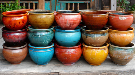 Durable Terracotta pots colorful. Vase decor jug. Generate Ai