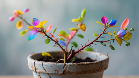 AI Generated. flower planting pot growth colorful botanical branch close up shot