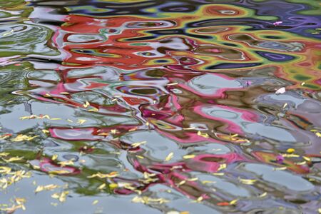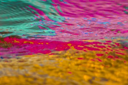 background and texture from abstract corrugated and wavy reflection in water of color spots