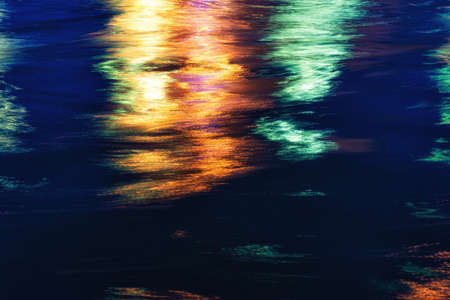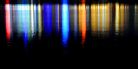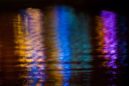 City lights reflections. Colorful glare on the water