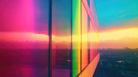Iridescent light rays creating a vibrant overlay texture on a reflective surface