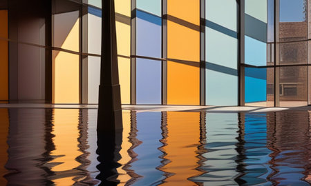 Colorful reflections of buildings in the water ripples