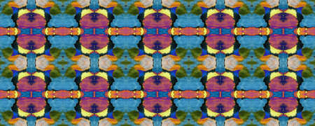 Seamless Ethnic Print. Handmade Artistic Wallpaper. Purple, Blue and Yellow. Ethnic Background. Mexico Tile Print. Watercolor Traditional Ethnic Print.