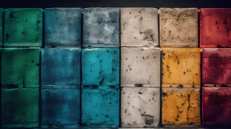 A detailed close-up view of a vibrant and multicolored wall constructed using various blocks, Abstract interpretations of different emotions using color blocks, AI Generated