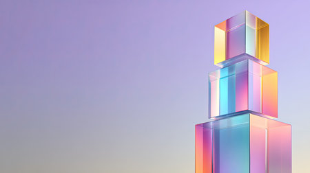 A captivating arrangement of colorful transparent geometric shapes stacked against a soft pastel backdrop, highlighting modern creativity and artistic expression.