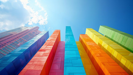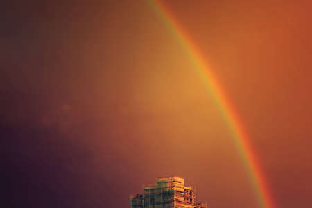 rainbow reflected in the windows of a towering skyscraper, created with generative ai