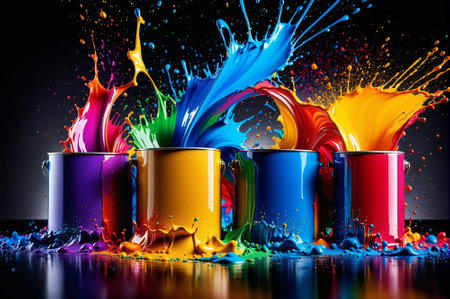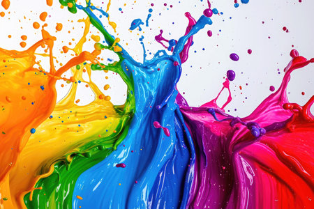 Captivating image showcasing vivid splashes of paint in motion. The dynamic display of colors creates a lively and visually striking moment frozen in time.