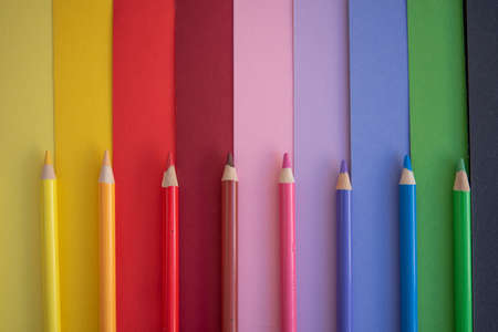 Colored pencils of different colors on a colored background close-up