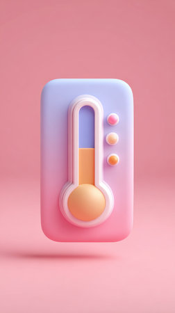 A 3D rendered thermometer icon on a pink background, perfect for temperature-related concepts.