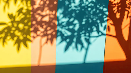 Shadow of trees on a colored wall. Abstract background. Copy space.
