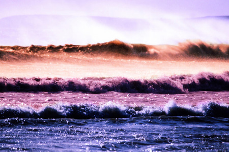 Real photo sea water waves, abstract background, nature power, pale light purple red orange matte more tone in stock