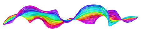 Abstract colorful wavy line flow. Isolated rainbow ribbon. 3D rendered art.