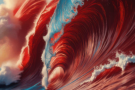 Abstract ocean wave on a vibrant red background