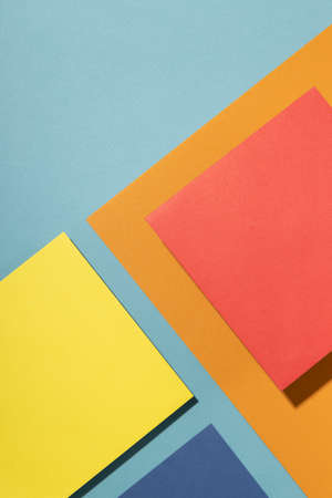 Abstract color papers geometry flat lay composition background with blue, yellow and red color tones