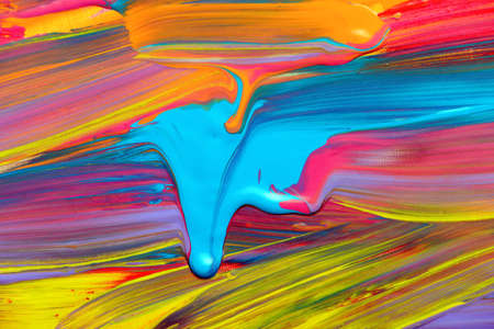 Strokes of colorful acrylic paints on canvas, closeup