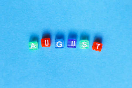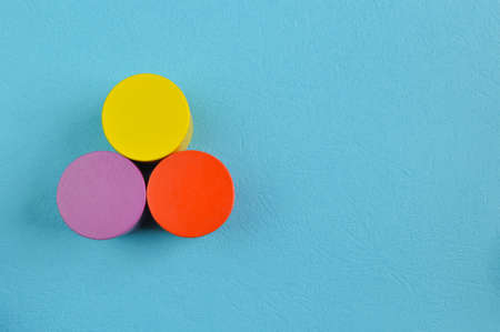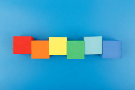 Colorful wooden cube blocks isolated on a blue background