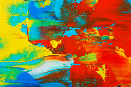 Abstract background of acrylic paint in blue red and yellow tones