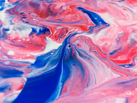 Close Up Colorful Red Blue White Colors Fluid Pouring Abstract Art Acrylic Painting Texture Background