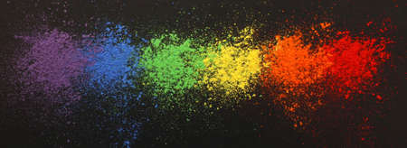 A wide banner background style shot of the LGQT rainbow flag colors made out of chalk dust and arranged in a line.