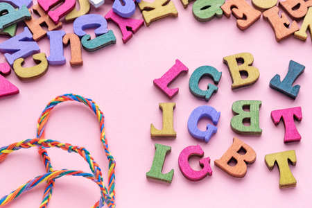 Multicolored letters of lgbt on pink background