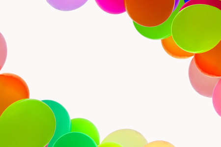 Colorful balloons and confetti .Festive or party background. Flat lay style. Copy space for text. Birthday greeting card.Selective focus.Summer holiday.