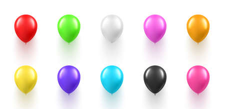 Collection of realistic multicolored shine balloon vector illustration flying helium toy ball