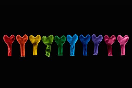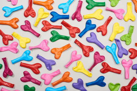 uninflated colorful party balloons on a white background. Multi-colored balloons for New Year, Birthday, Christmas