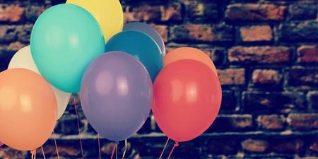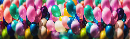 colorful pastel balloon hanging decoration in birthday celebration party background