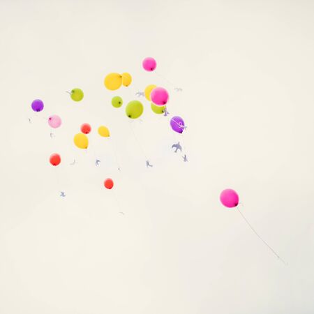 Colorful balloons done with a retro filter effect. Concept of happy birth day in summer and wedding, honeymoon party use for background. Vintage color tone style